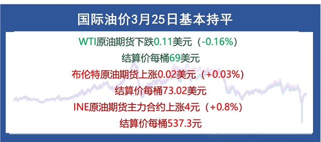 国际油价3月25日基本持平