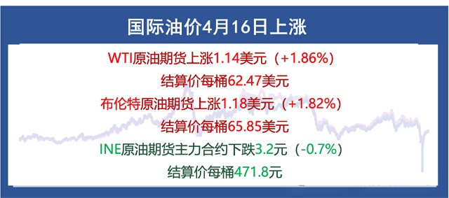 4月16日,国际原油期货价格上涨,主要因美国对伊朗石油出口实施新制裁。美国财政部周三表示,已对一家总部位于中国的独立炼油厂实施制裁,称该炼油厂参与购买价值超过10 亿美元的伊朗原油。美国财政部在一份声明中表示,特朗普此举将加大对进口伊朗石油的中国企业的压力。华盛顿还对几家公司和油轮实施了额外制裁,据称这些公司和油轮作为伊朗“影子舰队”的一部分,为伊朗运送石油提供便利。美国财政部长贝森特在声明中表示,任何选择购买伊朗石油或为伊朗石油贸易提供便利的炼油厂、公司或经纪商都将面临严重风险。2025年5月交货的WTI原油期货上涨1.14美元/桶(1.86%),结算价报62.47美元/桶;2025年6月交货的布伦特原油期货上涨1.18美元/桶(1.82%),结算价报65.85美元/桶。布伦特与WTI价差为3.38美元/桶,较前一日扩大0.04美元/桶。
